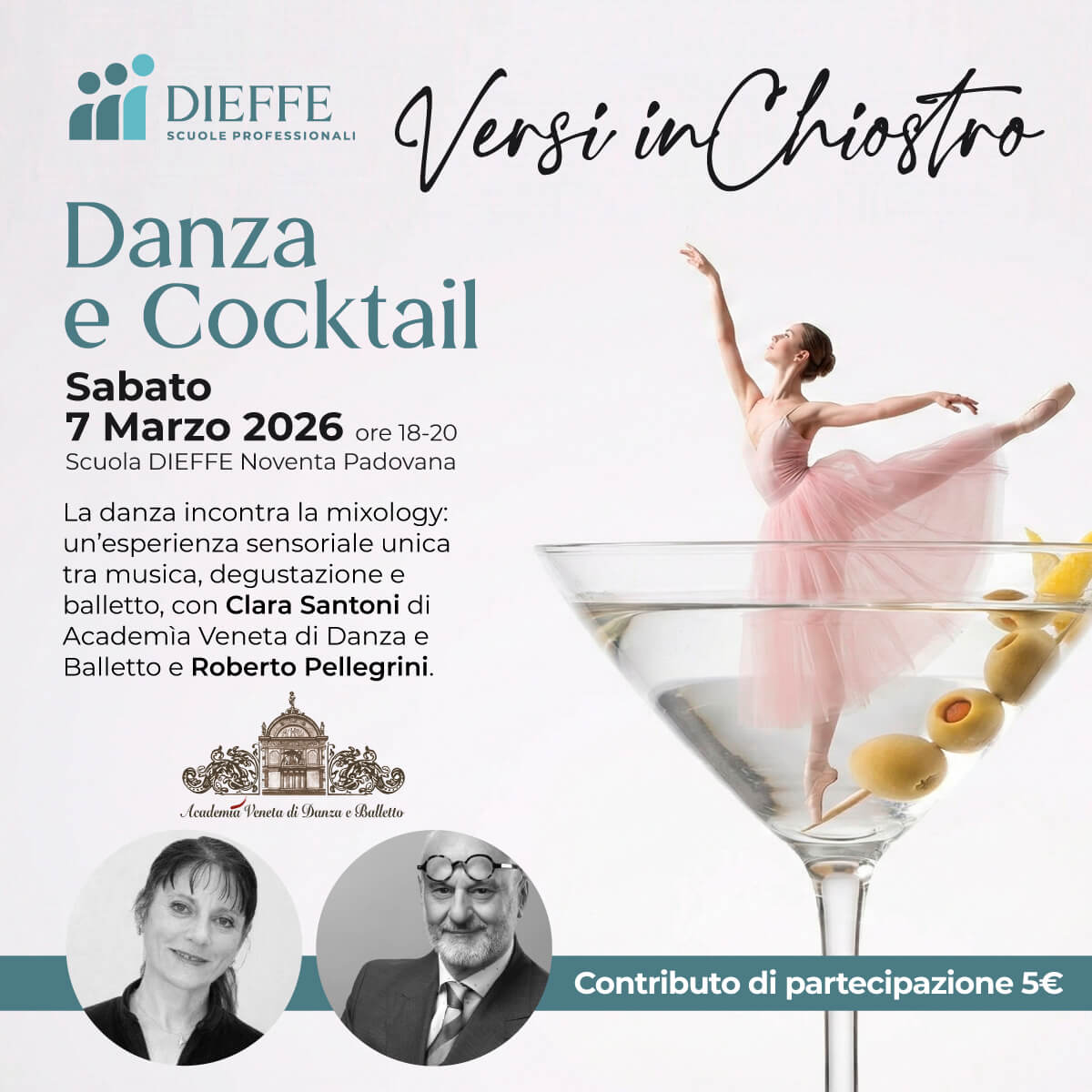 Versi inChiostro alla Scuola DIEFFE di Padova: danza e mixology si incontrano Sabato 7 marzo alle 18. Evento aperto al pubblico
